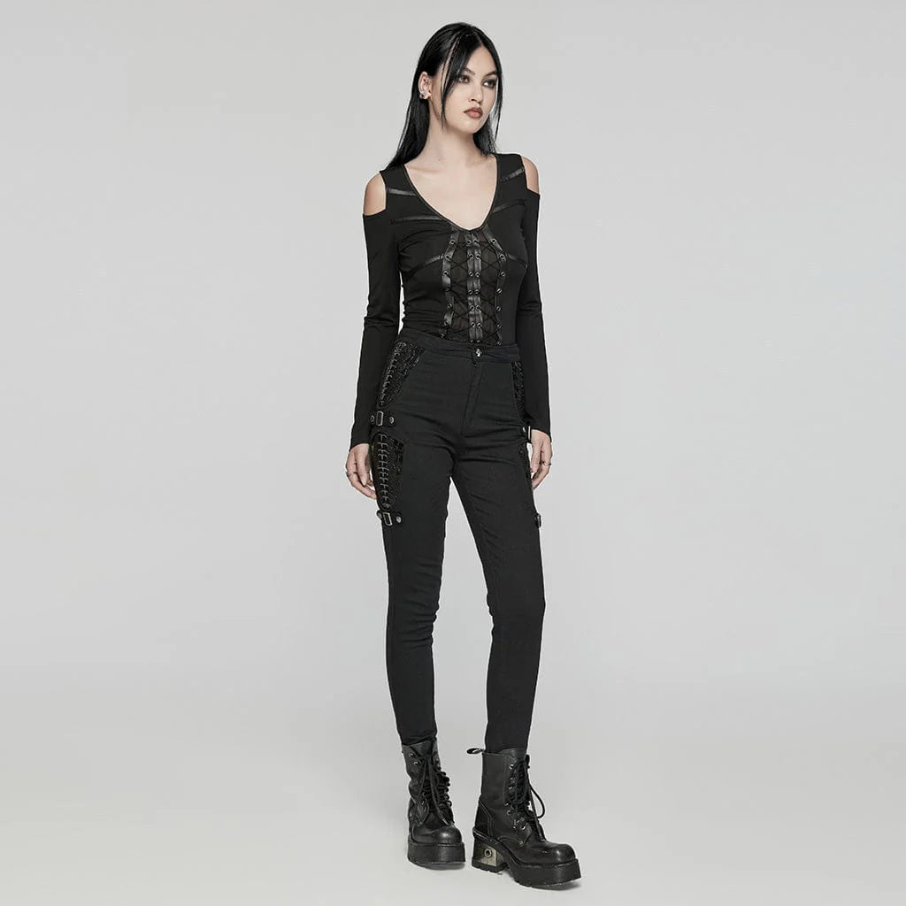 To lean into the "Cyber-Goth" or "Dark Tech" aesthetic, pair these with a crop top. The mix of patent leather on the legs and mesh on the top creates a multi-dimensional look. Finish with your heaviest platform boots to give the straight-cut hem a powerful landing.